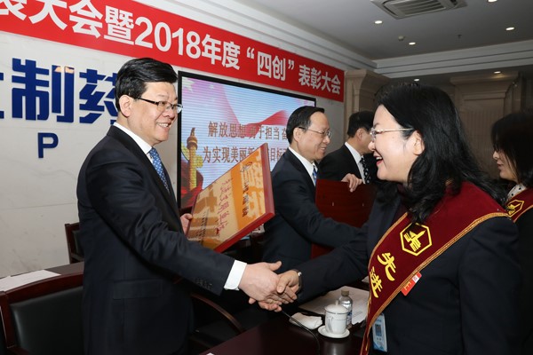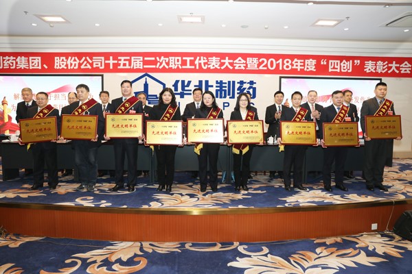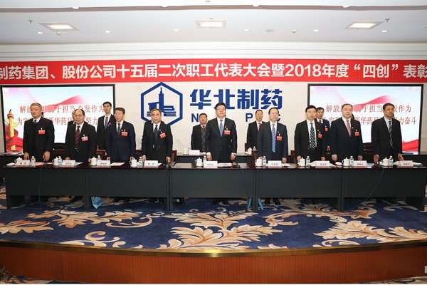 1月30日,华北制药集团、股份公司十五届二次职工代表大会暨2018年度“四创”表彰大会隆重召开。公司领导班子成员和主席团成员在主席台就座。来自各单位的职工代表、列席代表及受表彰人员参加了会议。大会在雄壮的国歌声中拉开序幕。